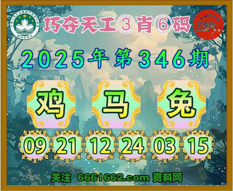 346期:《巧夺天工》 🍁③肖⑥码🍁【鸡马兔】开:兔03准
